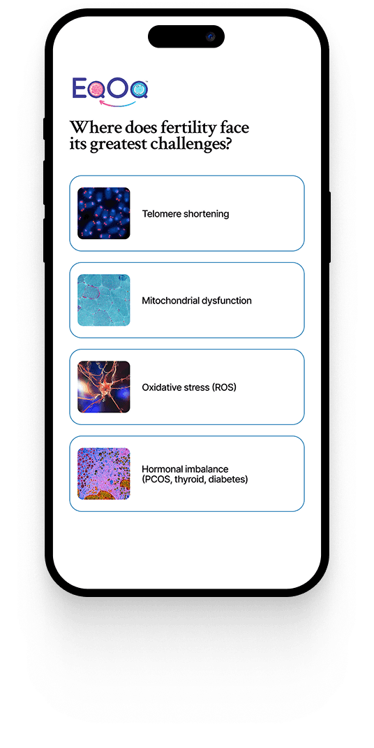 EQOQ is a patented innovation that restores oocyte and embryo health at the cellular level, empowering women with healthier pregnancies and brighter fertility outcomes.
