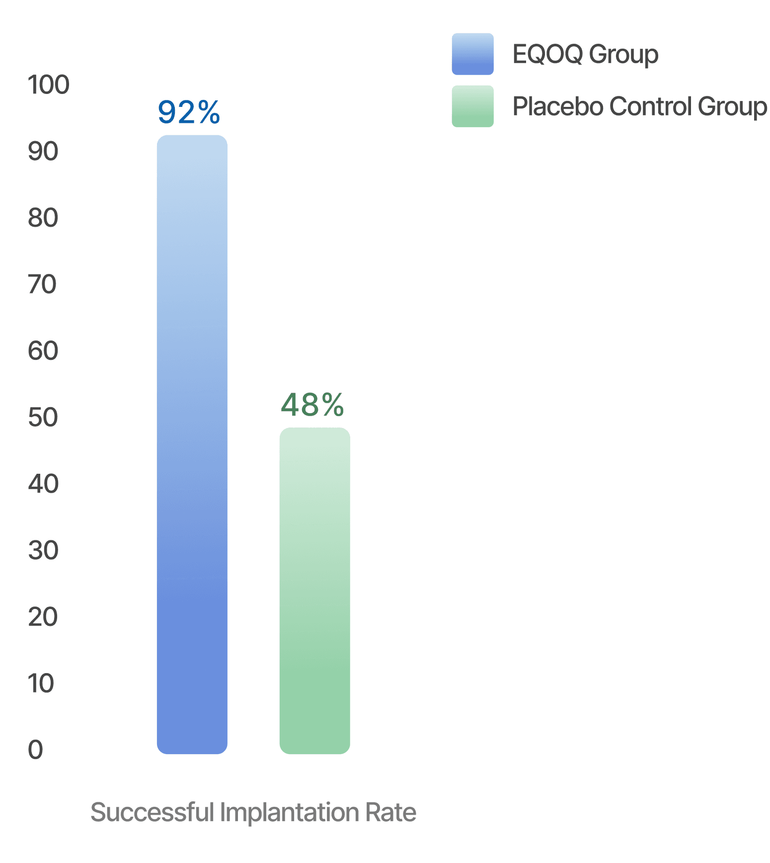 EQOQ enhances endometrial health by activating sirtuins with NMN, boosting repair, reducing inflammation, and promoting decidualization. L-ergothioneine protects cells from oxidative stress, fostering an optimal environment for embryo attachment and growth.
